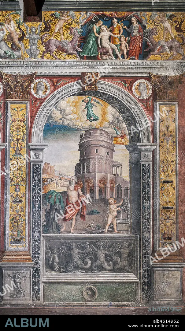 Mantua, Palazzo D'Arco, Sala dello Zodiaco (Chamber of the Zodiac): the astrological sign of Virgo. Fresco by Giovan Maria Falconetto, about 1515.