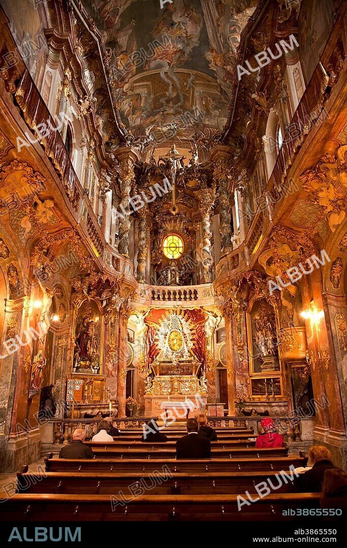 Interior of the late Baroque Asam Church or St. Johann Nepomuk Church, Munich, Upper Bavaria, Bavaria, Germany, Europe.