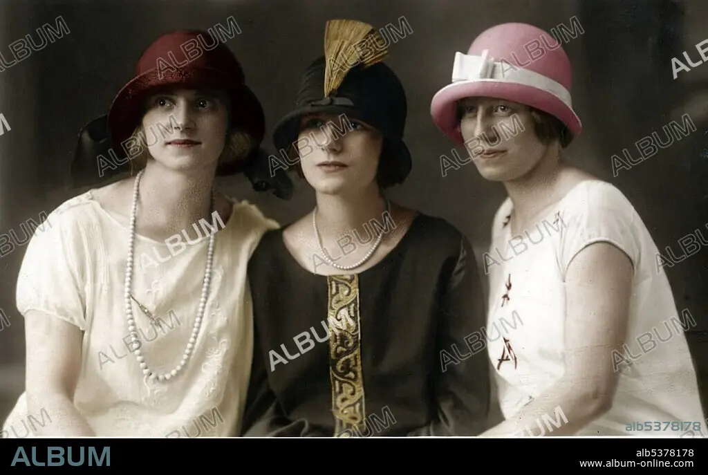 Three women with fashionble hats, historical photo, circa 1910