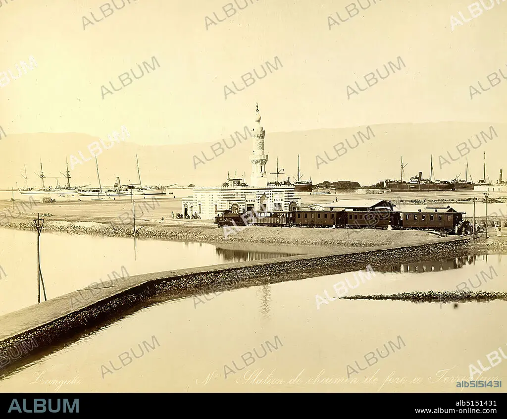 Constantine Zangaki, George Zangaki, Station de chaimin de fere a Terreplain, albumin paper, black and white positive process, image size: height: 21.80 cm; width: 28.00 cm, recto: lower left edge of image copied in: Zangaki; lower right image border copied in: No. Station de chaimin de fere a Terreplain; verso: in lead: George and Constantine Zangaki, travel photography, hist. Building, locality, street, railroad station, stop (railroad, streetcar), railway, train, Egypt