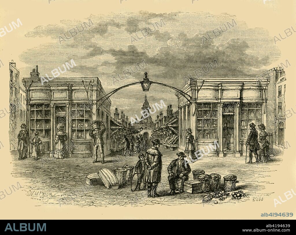 'Fleet Market', (c1872). Fleet Market, Farringdon Street, London. The River Fleet was covered over in 1736 and Fleet Market was set up to the west of the Smithfield livestock market. From Old and New London, Vol. II: A Narrative of Its History, Its People, and Its Places, by Walter Thornbury. [Cassell, Petter, Galpin & Co., London, Paris & New York]