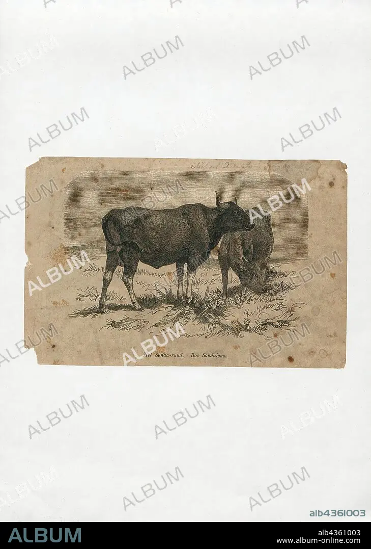 Bos sondaicus, Print, Bos is the genus of wild and domestic cattle. Bos can be divided into four subgenera: Bos, Bibos, Novibos, and Poephagus, but these divisions are controversial. The genus has five extant species. However, this may rise to seven if the domesticated varieties are counted as separate species, and nine if the closely related genus Bison is also included. Most modern breeds of domesticated cattle are believed to have originated from the extinct aurochs., 1700-1880