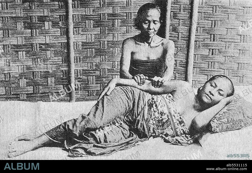 Indonesia: Traditional Javanese massage, Dutch East Indies, c. 1890