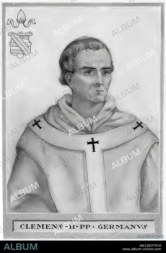 Caption: Clemens II, secular name Suitger, Suidger, Count of Morsleben and Hornburg (born 1005 in Hornburg) (died 9 October 1047 in the monastery of San Tommaso in Foglia in Apsella di Montelabbate), was Pope from 1046 to 1047, Historical, digitally restored reproduction from a 19th century original. century, Clement II, secular name Suitger, Count of Morsleben and Hornburg (born 1005 in Hornburg) (died 9 October 1047 in the monastery of San Tommaso in Foglia in Apsella di Montelabbate), was pope