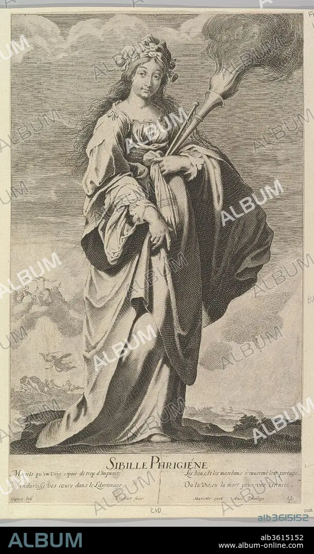 Sibylle Phrygienne. Artist: Abraham Bosse (French, Tours 1602/1604-1676 Paris); Gilles Rousselet (French, Paris 1614-1686 Paris); After Claude Vignon (French, Tours 1593-1670 Paris). Dimensions: sheet: 14 1/8 x 8 7/16 in. (35.8 x 21.5 cm). Publisher: Published by Pierre Mariette (French, 1596-1657). Series/Portfolio: Douze Sibylles. Date: ca. 1635.