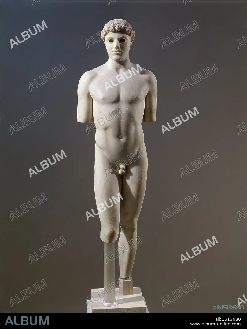 Caption: Greek civilization, 5th century b.C. The Kritios Boy or the Kritios Ephebe, 480 b.C., marble statue.