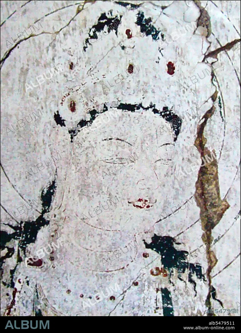 Title: Japan: Lost Horyuji Temple fresco from a pre-1949 photograph: No. 8 wall, Manjyushuli, detail of face.