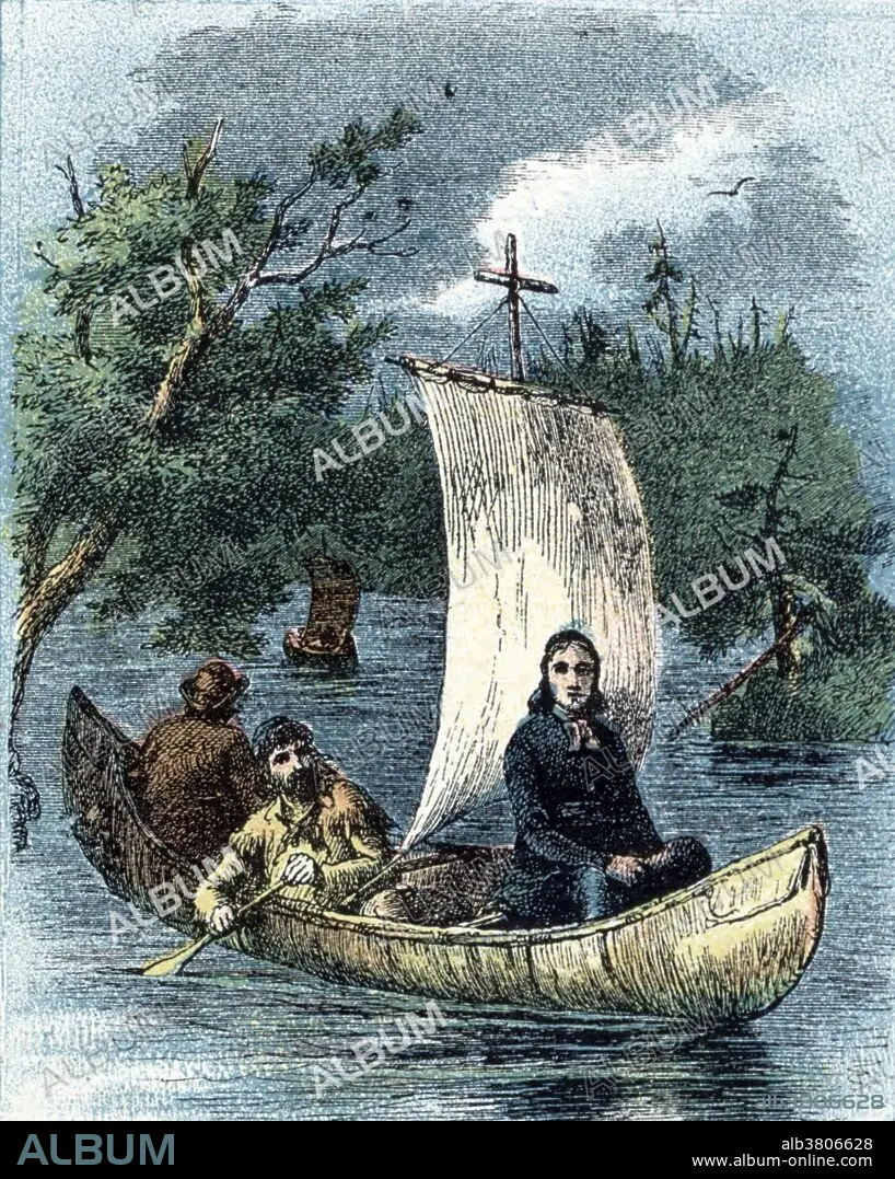 Caption: Father Jacques Marquette (June 1, 1635 - May 18, 1675) was a French Jesuit missionary and explorer. The Jesuits assigned him to New France in 1666 as a missionary to the Indigenous peoples of the Americas. He showed great proficiency in learning the local languages. He helped found missions at Sault Ste. Marie (Michigan) and at La Pointe, on Lake Superior (Wisconsin). At La Pointe he encountered members of the Illinois tribes, who told him about the important trading route of the Mississippi River. In 1673, he joined the expedition of Louis Jolliet, a French-Canadian explorer. The Joliet-Marquette expedition traveled to within 435 miles of the Gulf of Mexico but turned back at the mouth of the Arkansas River, for fear of encountering explorers or colonists from Spain. Marquette and his party returned to the Illinois Territory in late 1674, becoming the first Europeans to winter in what would become the city of Chicago. He died in 1675, at the age of 37, suffering from a bout of dysentery.
