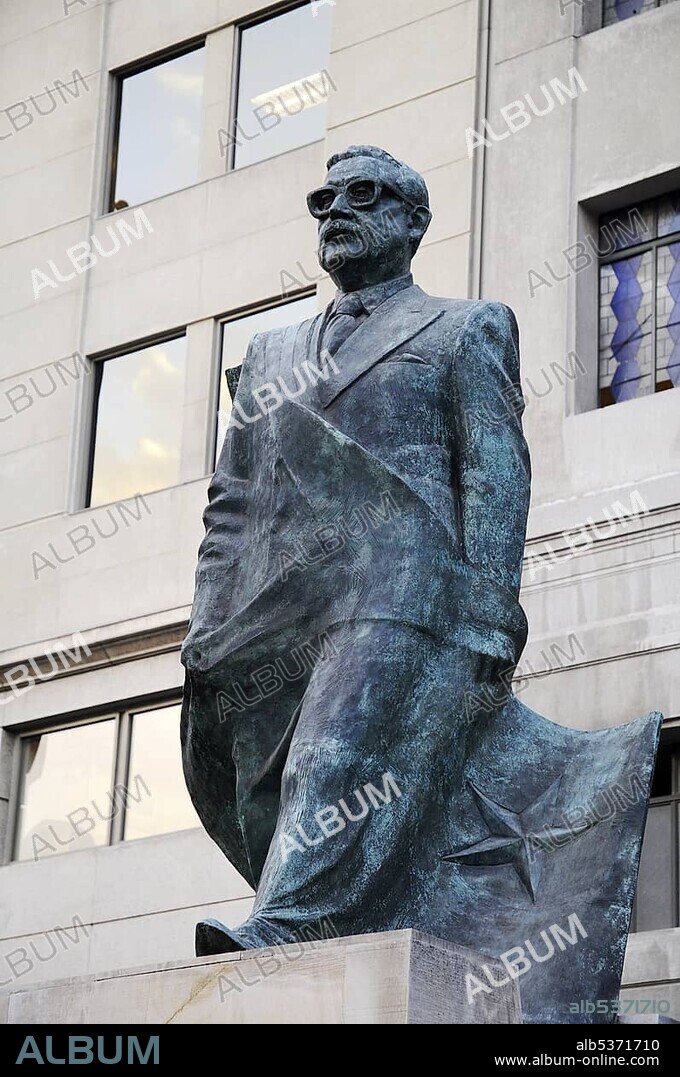 Monument to Salvador Allende, Justice Palace, Plaza de Constitucion square, Santiago de Chile, Chile, South America.