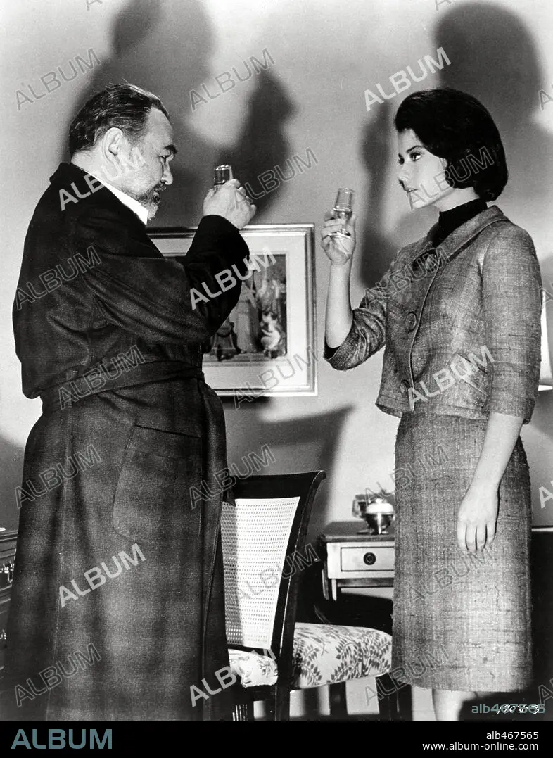 DIANE BAKER and EDWARD G. ROBINSON in THE PRIZE, 1963, directed by MARK ROBSON. Copyright M.G.M.