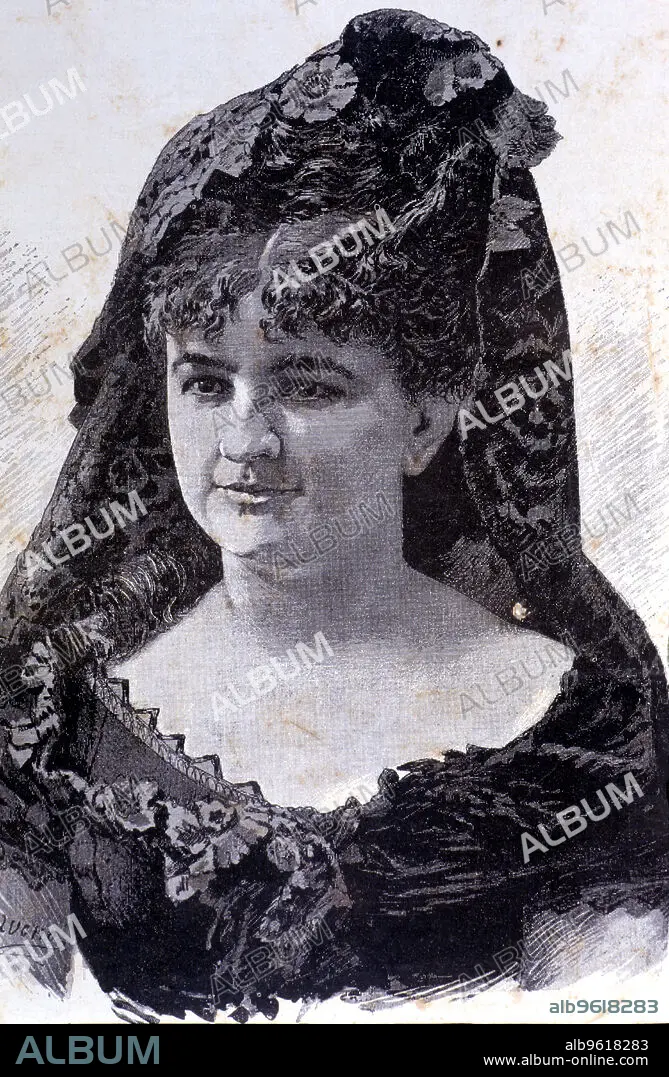 Caption: Emilia Pardo Bazán (1851-1921), Galician writer at the age of 30 years, engraving.