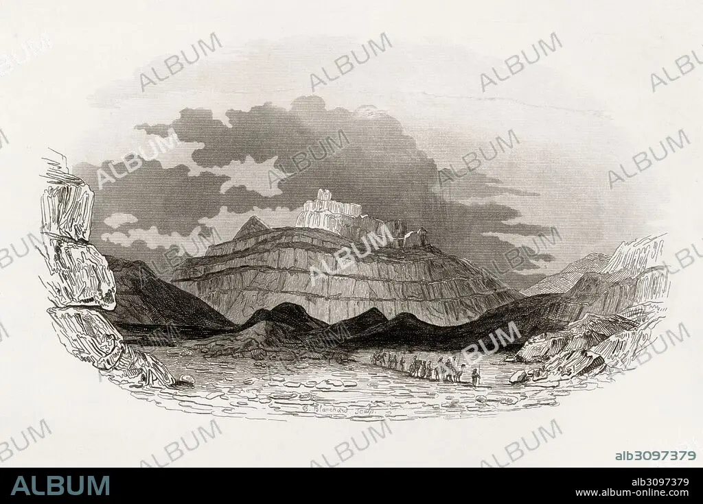Automatic translation: Sacred history. View of Mount Hor, in Edom, where the tomb of Aaron, brother of Moses, is located. 1862 engraving