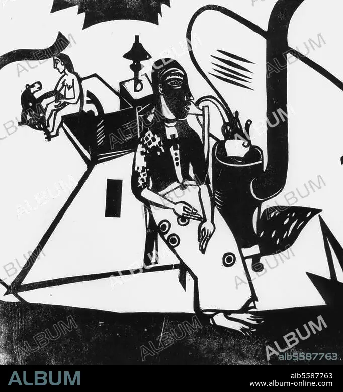 Campendonk, Heinrich. 1889-1957. "Interieur mit Ofen", undat. Holzschnitt. (Bildquelle ohne Maßangaben). Saarbrücken, Saarland-Museum.