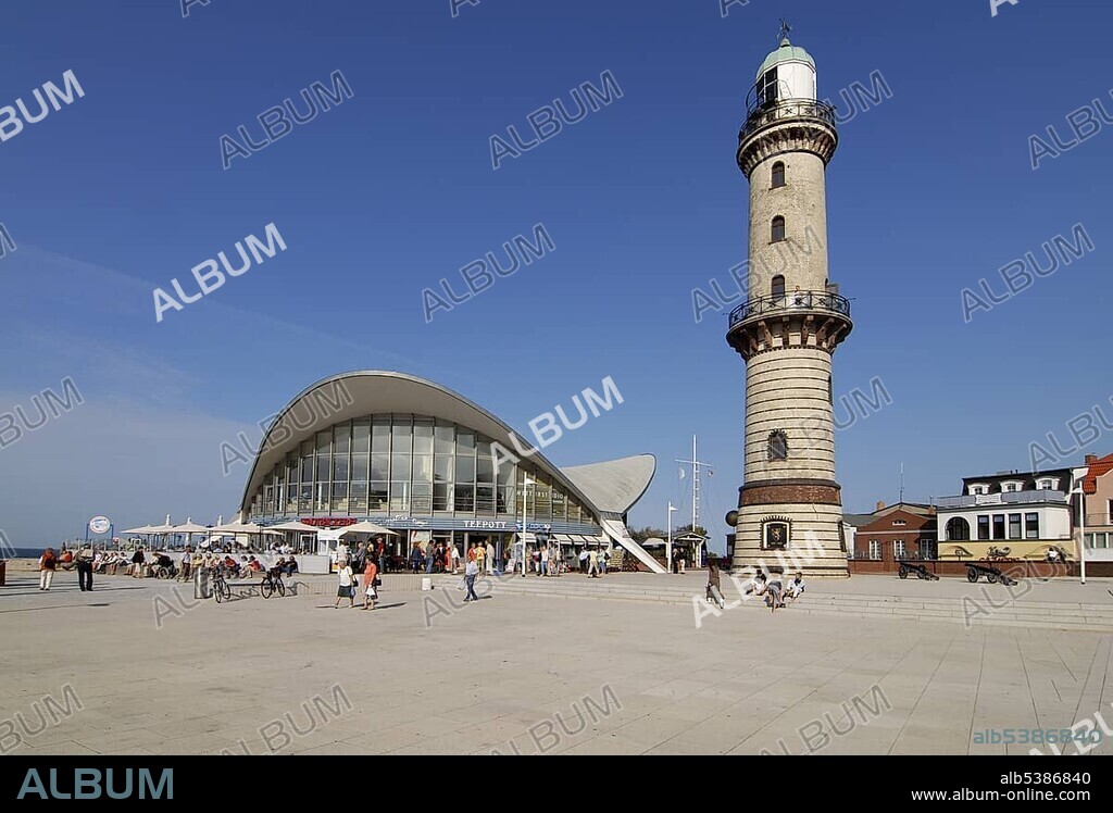 Old lighthouse and Teapot building at Warnemuende, Mecklenburg-Western Pomerania, Germany, Europe.