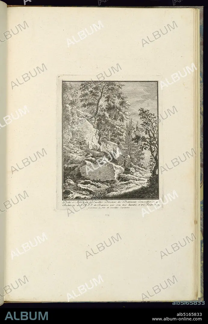 Caption: Design for a Landscape with Rocks, François de Cuvilliés the younger, German, 1731 - 1777, François de Cuvilliés the younger, German, 1731 - 1777, François de Cuvilliés the younger, German, 1731 - 1777, Etching and engraving on off-white laid paper, Germany, 1745, landscapes, Print, Print