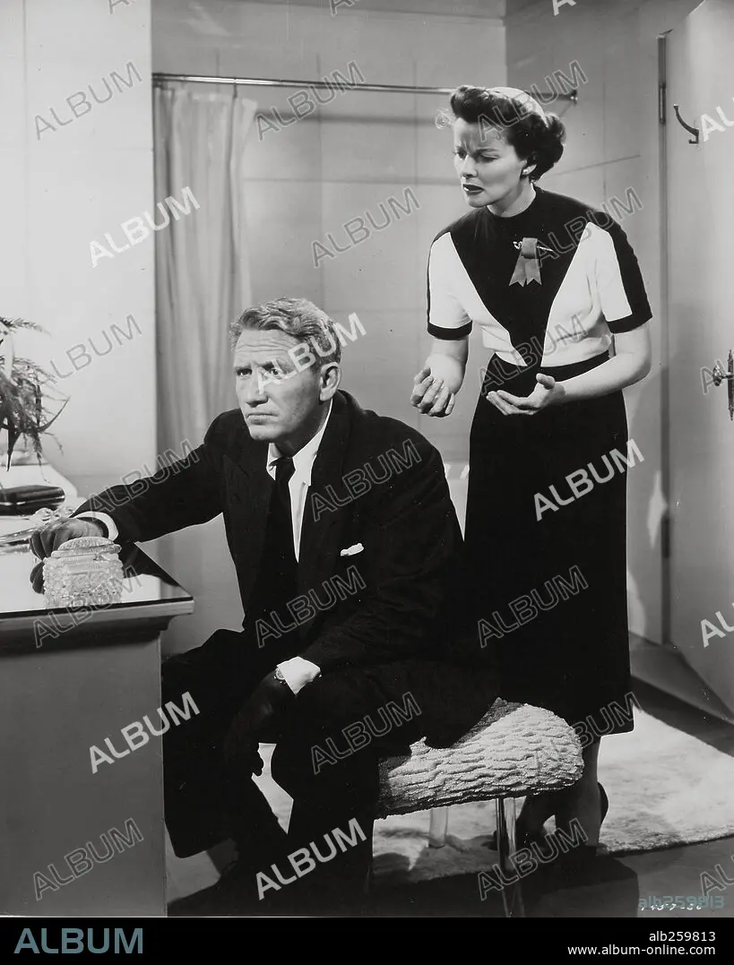 KATHARINE HEPBURN and TRACY SPENCER. KATHARINE HEPBURN and SPENCER TRACY in ADAM'S RIB, 1949, directed by GEORGE CUKOR. Copyright M.G.M.
