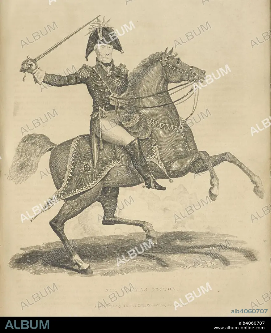 Caption: Sir Thomas Picton. Lieutenant General Sir Thomas Picton GCB (24 August 1758 – 18 June 1815) was a British Army officer killed at the Battle of Waterloo. History of the French Revolution, and of the wars produced by that ... event ...; and the ... Battle of Waterloo. London : T. Kelly, 1820-22. Source: 9525.f.1 volume 2 plate opposite page 464.