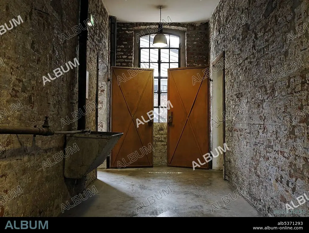 Corridor with steel doors, workshop building, Hendrichs swage forge, LVR Industrial Museum, Solingen, North Rhine-Westphalia, Germany, Europe