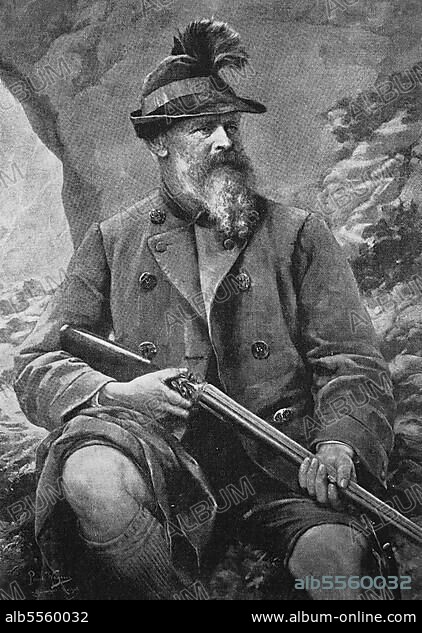 Prinzregent Luitpold von Bayern als Jäger mir Flinte, Luitpold Karl Joseph Wilhelm von Bayern, 12. März 1821, 12. Dezember 1912, war von 1886 bis zu seinem Tod Prinzregent des Königreiches Bayern, Historisch, digitale Reproduktion einer Originalvorlage aus dem 19. Jahrhundert, Originaldatum nicht bekannt