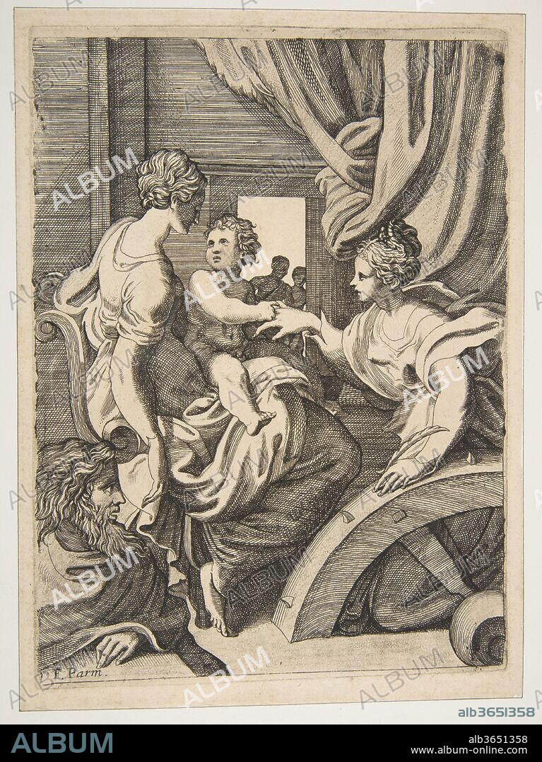 The mystic marriage of Saint Catherine. Artist: Anonymous, Italian, 16th century; After Parmigianino (Girolamo Francesco Maria Mazzola) (Italian, Parma 1503-1540 Casalmaggiore); After Giulio Bonasone (Italian, active Rome and Bologna, 1531-after 1576). Dimensions: plate: 8 1/16 x 5 13/16 in. (20.5 x 14.8 cm)