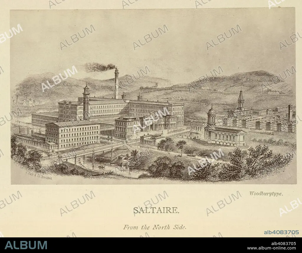 Caption: Saltaire. Sir Titus Salt, Baronet: his life and its lessons. Hodder & Stoughton: London, 1877. The model village of Saltaire and the factories of Sir Titus Salt, manufacturer and philanthropist. Image taken from Sir Titus Salt, Baronet: his life and its lessons With portrait, etc. Originally published/produced in Hodder & Stoughton: London, 1877. . Source: 10826.aaa.10, opposite 123. Language: English.