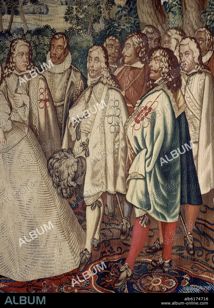 CHARLES LE BRUN (1619-1690). TAPIZ DEL ENCUENTRO DE LUIS XIV Y FELIPE IV EL 7 JUN 1660 - EL MATRIMONIO DE LUIS XIV Y LA INFANTA MARIA TERESA POR LA PAZ DE LOS PIRINEOS - DETALLE