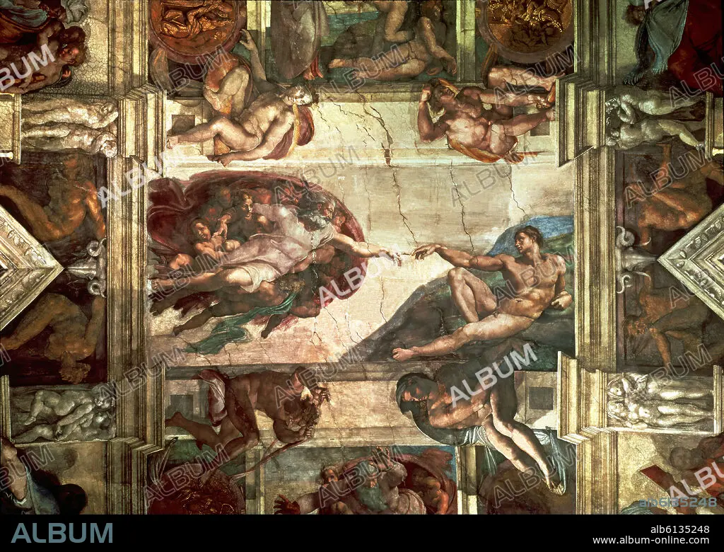 CEILING FRESCOES - THE CREATION OF ADAM - BEFORE RESTORATION - 1508-1512 - ITALIAN RENAISSANCE