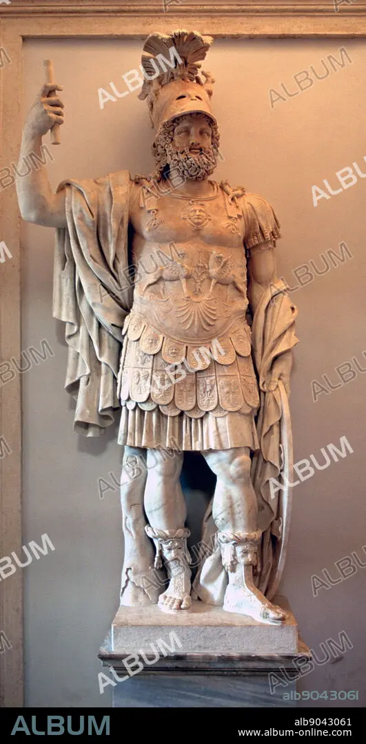 A 1st-century Mars Ultor, found in the Forum of Nerva (Capitoline Museums, Rome). In ancient Roman religion and myth, Mars (Latin: M?rs, [mars]) was the god of war and also an agricultural guardian, a combination characteristic of early Rome. Augustus created the cult of 'Mars the Avenger' to mark two occasions: his defeat of the assassins of Caesar at Philippi in 42 BC, and the negotiated return of the Roman battle standards that had been lost to the Parthians at the Battle of Carrhae in 53 BC.