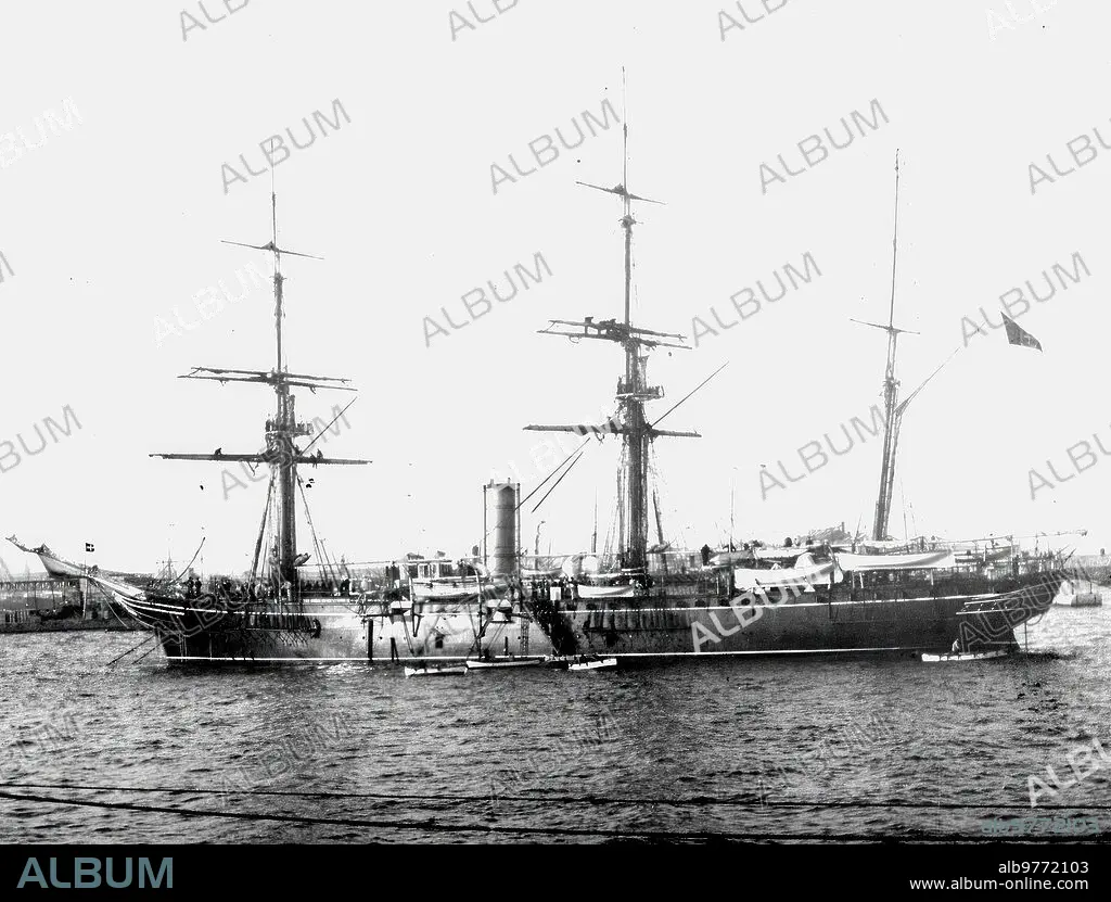 Caption: April 23, 1906. Barcelona. Corvette-school of the Italian Marine Guards, which has anchored in the port of Barcelona