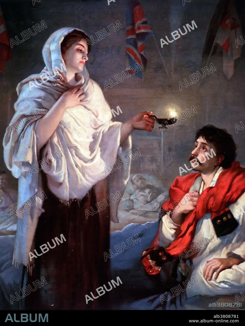 Caption: The Lady with the Lamp, Miss Nightingale at Scutari, 1854 from the painting by Henriette Rae. Florence Nightingale (May 12, 1820 - August 13, 1910) by sheer force of character created the movement that led to professional status for nurses. Her career began when she nursed her mother through a terminal illness, Her formal exposure to medicine was a 3 month course at the Institute for Protestant Deaconesses in Germany. She came to prominence while serving as a manager of nurses trained by her during the Crimean War, where she organized the tending to wounded soldiers. She gave nursing a highly favorable reputation and became an icon of Victorian culture, especially in the persona of "The Lady with the Lamp" making rounds of wounded soldiers at night. After the war she established the Nightingale School and Home for training nurses at St. Thomas's Hospital. Much of her published work was concerned with spreading medical knowledge. Some of her tracts were written in simple English so that they could easily be understood by those with poor literary skills. She died peacefully in her sleep, in 1910, at the age of 90.
