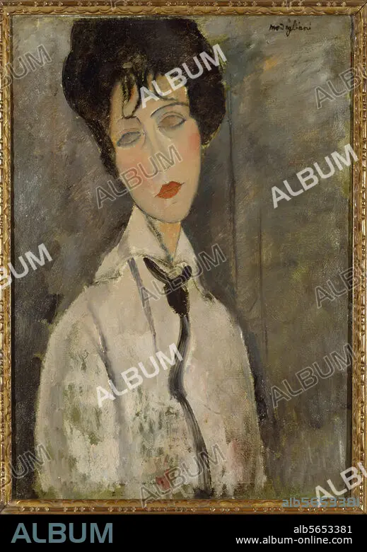 Caption: Modigliani, Amedeo. Italian painter; 1884-1920. "La femme à la cravatte noir" (Portrait of a Woman in a Black Tie), 1917. Oil on canvas, 65 × 50 cm. Private Collection.