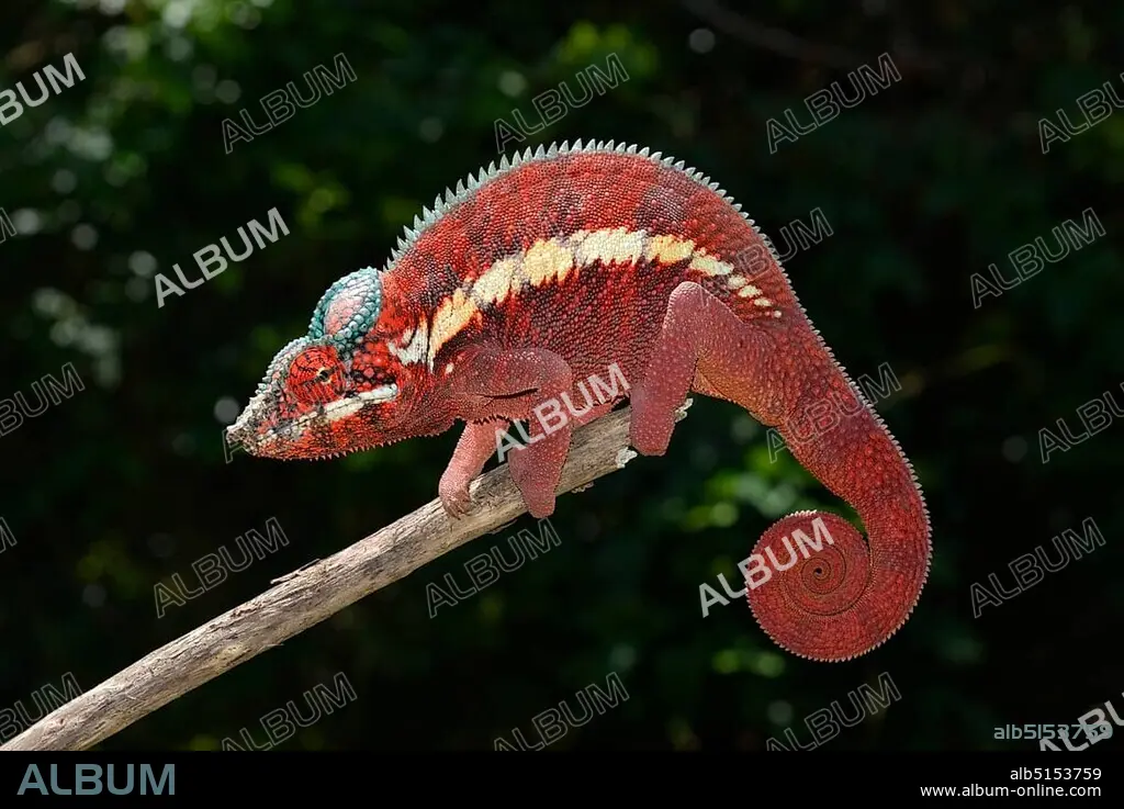 Panther Chameleon (Furcifer pardalis) in the lowland forests of Ankaramybe, Madagascar, Africa