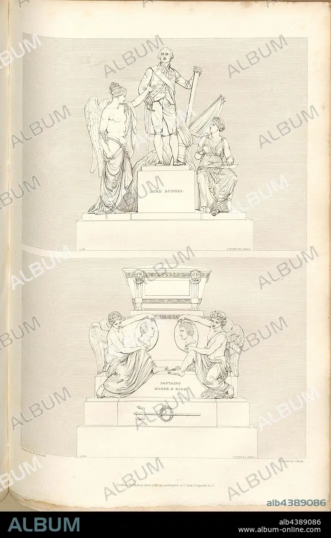 Caption: Lord Rodney, and Captains Mosse and Riou, Monuments to Captain James Robert Mosse, Captain Edward Riou and Lord Rodney, signed: Drawn by H. Corbould; Engraved by C. Heath; Published by Lackington & Co. and Longman & Co., Pl. LIX, at p. 208, Corbould, H. (drawing); Heath, C. (engraving); Lackington & Co. (publ.); Longman & Co. (publ.), William Dugdale, Henry Ellis: The history of Saint Paul's Cathedral in London, from its foundation: extracted out of original charters, records, leiger-books, and other manuscripts. London: printed for Lackington, Hughes, Harding, Mavor, and Jones; and Longman, Hurst, Rees, Orme, and Brown, 1818