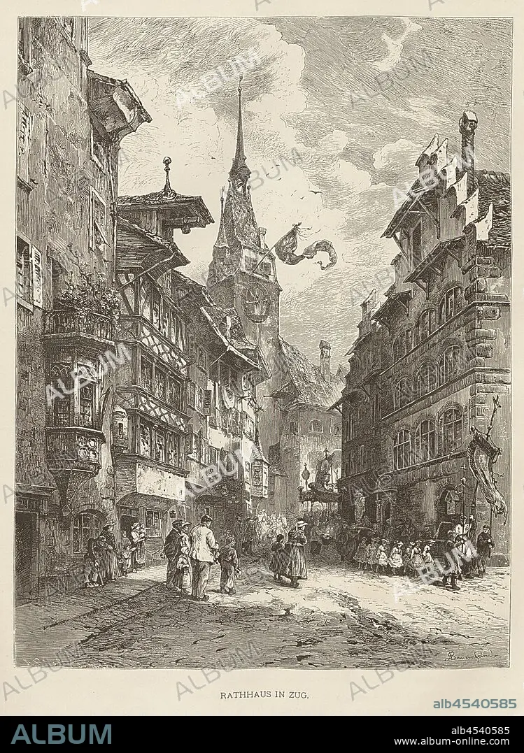 Caption: Town Hall in Zug, Illustration of the Town Hall in Zug from the 19th century, signed: A. Closs X. J, G. Bauernfeind, Fig. 101, according to p. 122, Closs, Adolf; Bauernfeind, Gustav, Woldemar Kaden: Das Schweizerland: eine Sommerfahrt durch Gebirg und Thal. Stuttgart: Engelhorn, 1875