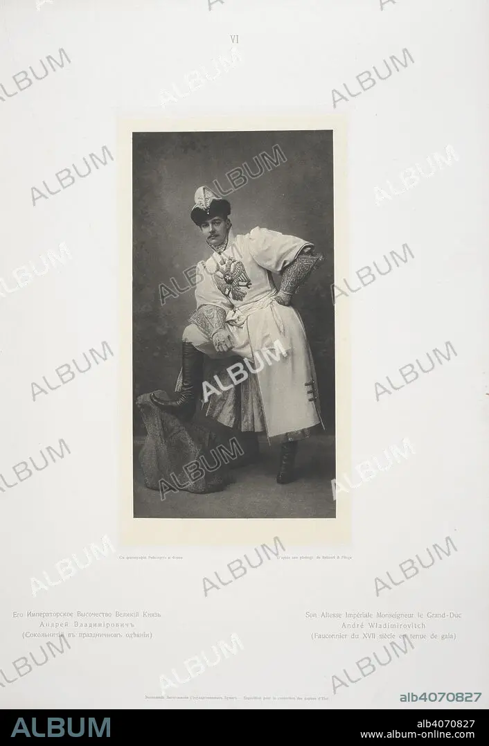 Caption: Son Altesse impériale Monseigneur le Grand-Duc Andre Wladimirovitch. Grand Duke Andrei Vladimirovich of Russia, known in France under the name of Grand Duke Andrew of Russia (in Russian: Ðндрей Владимирович Романов) (1879 -1956.) . Ðльбомъ коÑтюмированнаго бала въ Зимнемъ Дворцѣ въ февралѣ 1903 г. = Album du bal costumeÌ au Palais d'hiver : feÌvrier 1903. S.-Peterburg : Ėkspeditï¸ s︡iÌ„iï¸ a︡ zagotovleniÌ„iï¸ a︡ gos. bumag, 1904. Source: KTC.111.b.2 plate VI. Language: Russian.