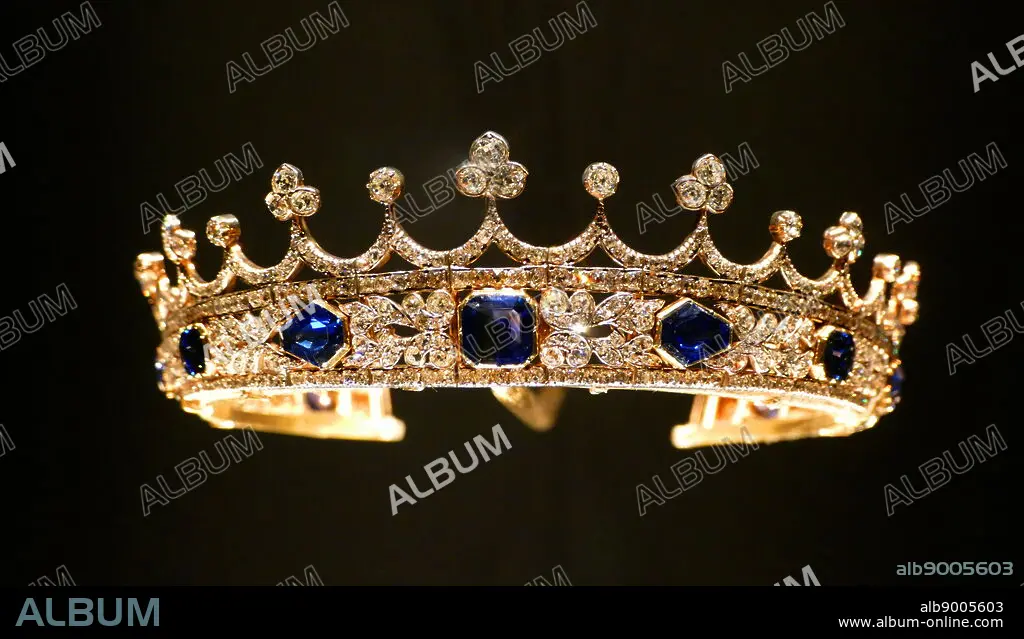 Queen Victoria's sapphire and diamond coronet, designed for her by Prince Albert in 1840. Made by Joseph Kitching. In 1842, Victoria wore the newly completed coronet in a famous portrait by Franz Xavier Winterhalter.