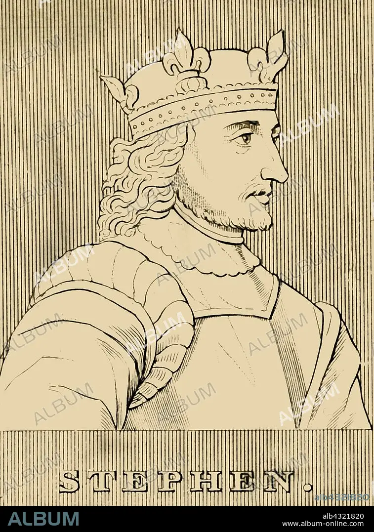 Caption: 'Stephen', (c1096-1154), 1830. Stephen (c1096-1154), known as Stephen of Blois, King of England from 22 December 1135 to his death, Count of Boulogne 1125-1147 and Duke of Normandy from 1135-1144, his reign was marked by the Anarchy, From "Biographical Illustrations", by Alfred Howard. [Thomas Tegg, R. Griffin and Co., J. Cumming, London, Glasgow and Dublin, 1830]