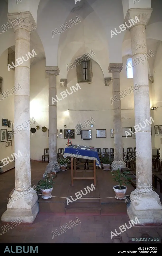The synagogue of Tomar, Portugal, 2009. The synagogue of Tomar is the best preserved of the mediaeval synagogues of Portugal. It is located in the historic centre of the city of Tomar and houses a small Jewish Museum. Tomar was founded in the 12th century as the headquarters of the Knights Templar in Portugal. In order to establish an easy cohabitation between the town and the Convent of the Knights of Christ, the castle was built in three distinct walled enclosures, surrounded by an extensive outer wall. The largest enclosure, which faced southwards, was the walled town, whose gateway overlooked the area known as Sete Montes. In the 16th century the town was emptied of its inhabitants and transformed into kitchen gardens and orchards for the monks of the Order of Christ. In recent times the vegetable gardens have been replaced by the Parque do Laranjal, where can be found evidence of the old town in the stones of the doorways and windows that have been preserved by time. The Templar Castle and the Convent were declared a World Heritage Site by UNESCO in 1983.