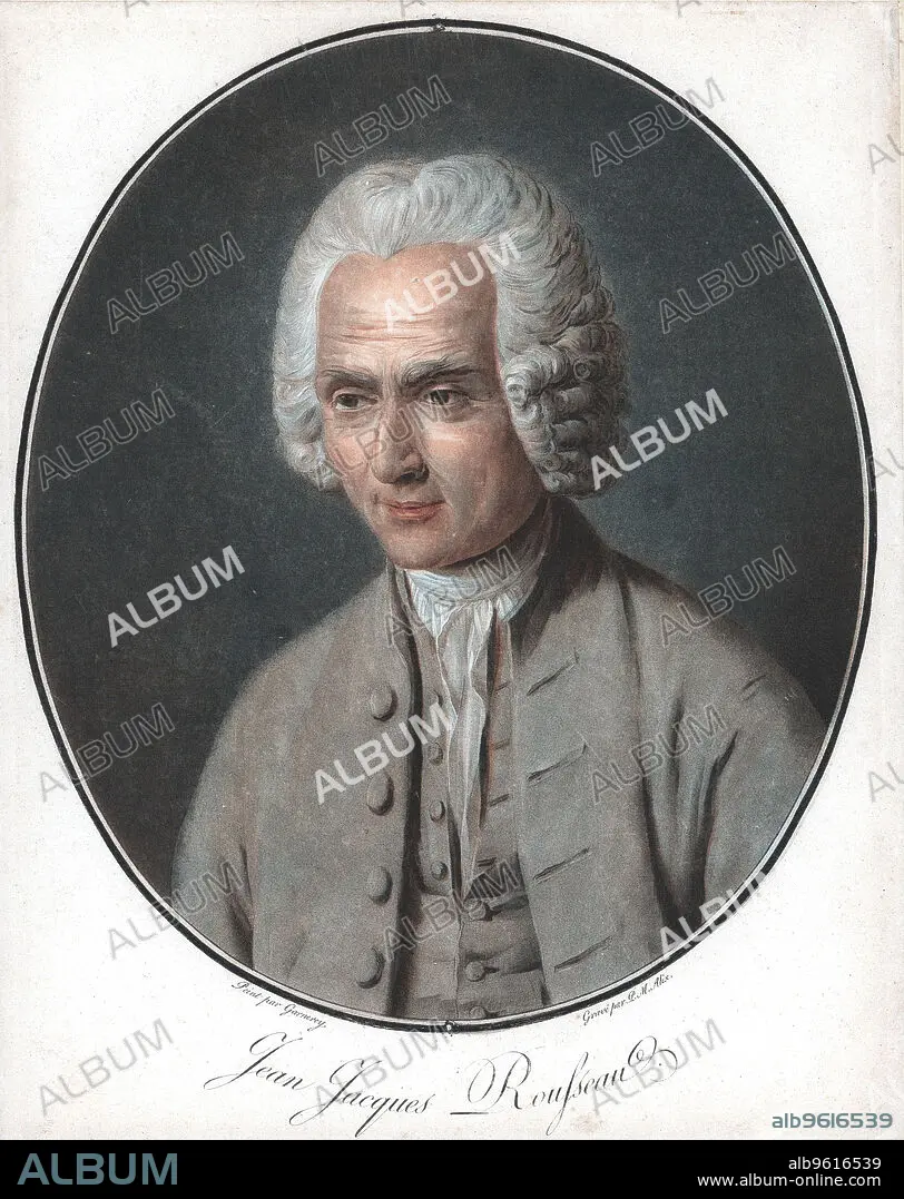 Jean-Jacques Rousseau (1712-78), French political philosopher, educationalist and author. Aquatint after portrait by Garneray from Pierre Michel Alix (1752-1817) series of portraits of eminent men.