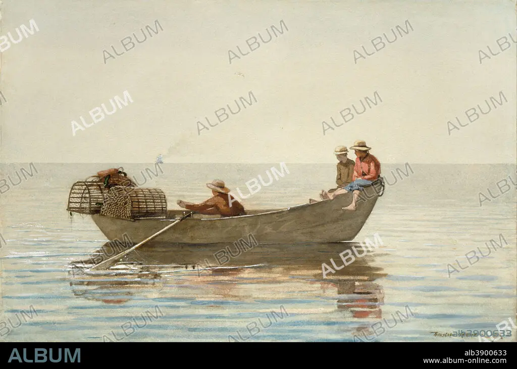 Caption: Three Boys in a Dory with Lobster Pots. Date/Period: 1875. Painting. Watercolor and gouache over graphite on paper. Height: 34.4 cm (13.5 in); Width: 52 cm (20.5 in).