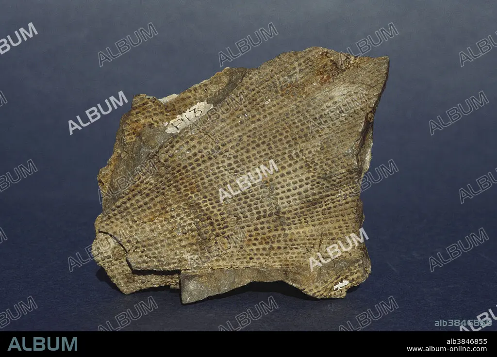 Caption: Fenestellid bryozoans fossilized in mudstone from Tasmania, Australia.