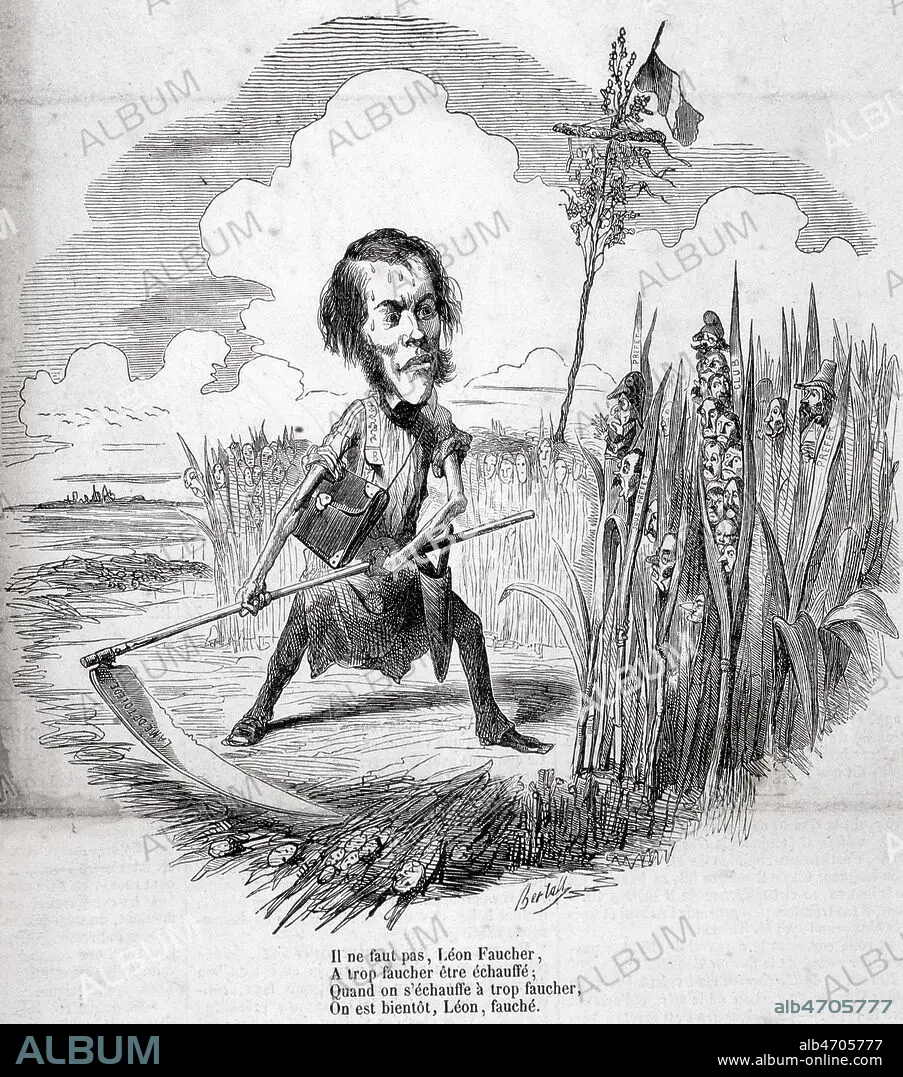 Caricature de Leon FAUCHER (1803-1854) par BERTALL (1820-1882), tiree du Journal pour Rire en 1849. Credit : Collection KHARBINE-TAPABOR.