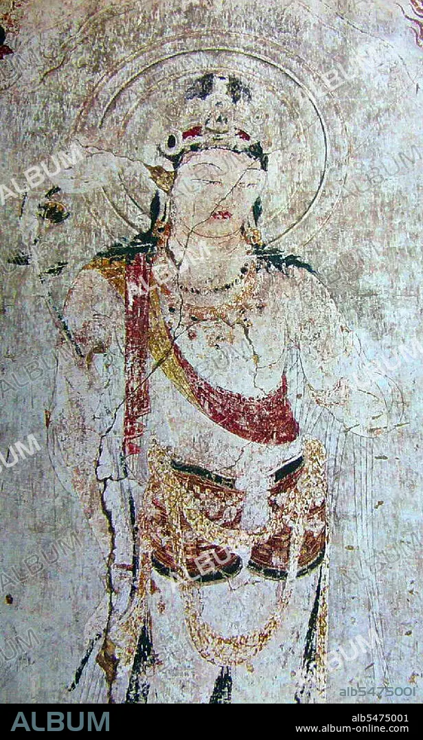 Title: Japan: Lost Horyuji Temple fresco from a pre-1949 photograph: No.3 wall, Avalokitesvara, detail.