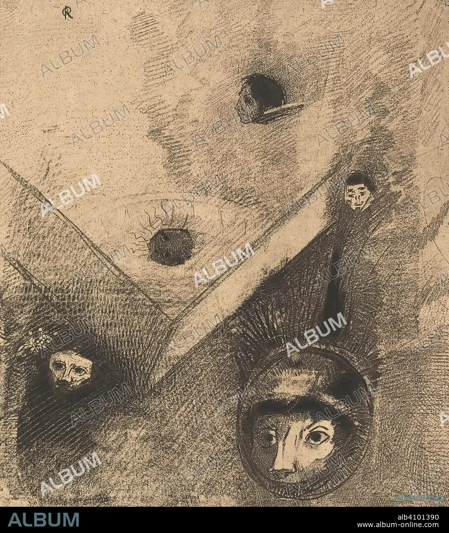 ODILON REDON. Sur le fond de nos nuits Dieu de son doigt savant, Dessine un cauchemar multiforme et sans trève from the series Les fleurs du mal. Dimensions: 43.8 cm x 32 cm, 21.5 cm x 19.1 cm.
