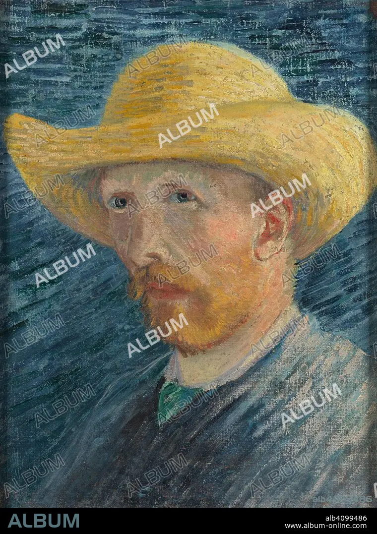 Caption: Self-Portrait with Straw Hat. Date: July-August 1887, Paris. Dimensions: 41.8 cm x 31.5 cm, 48.4 cm x 38.0 cm.