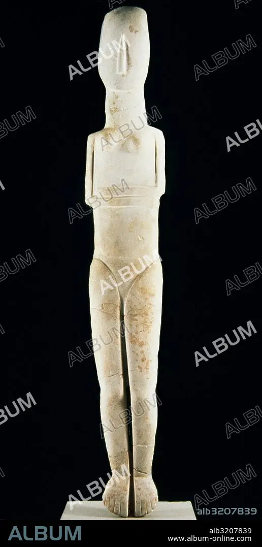 Female statue of the Early Cycladic folded-arm type. Parian marble. 2700-2300 BC. National Archaeological Museum of Athens. Greece.