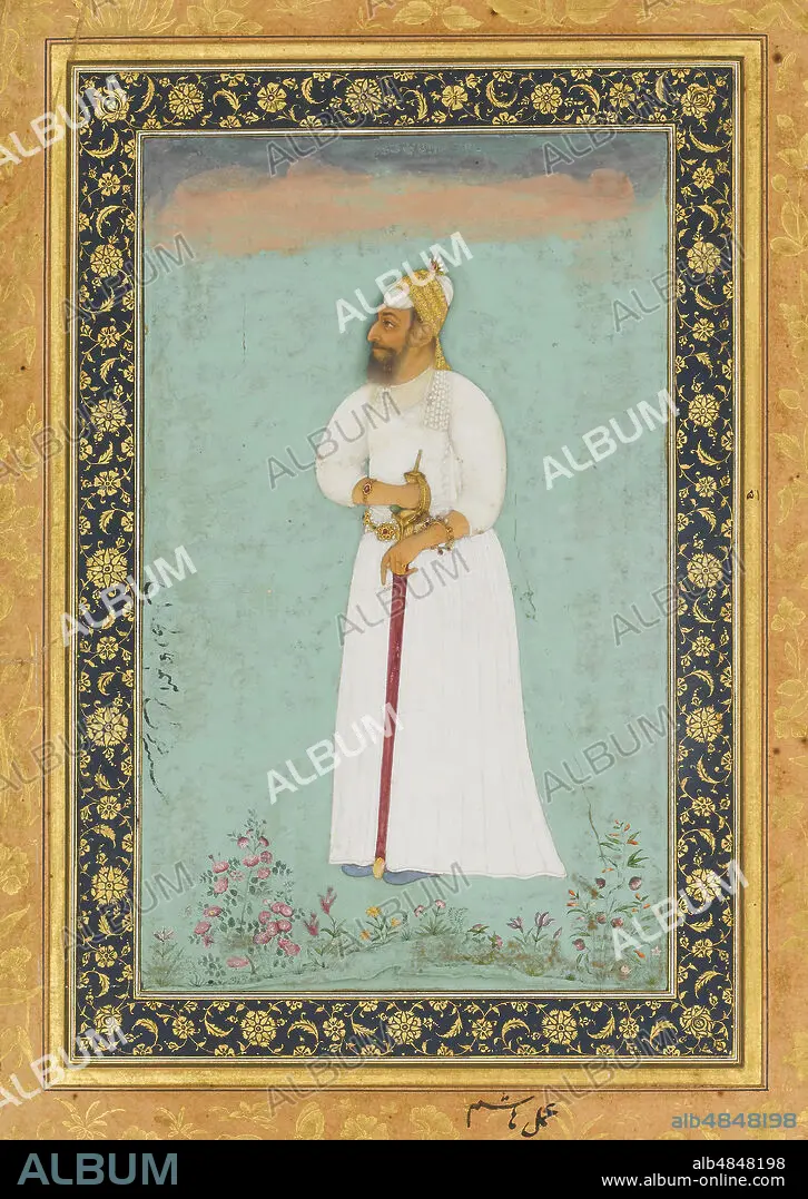 Title: Portrait of Ibrahim 'Adil Shah II of Bijapur, Folio from the Shah Jahan Album, verso: ca. 1620. Creators: Hashim, Mir 'Ali Haravi.