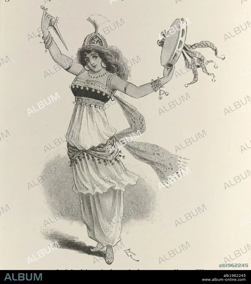 Caption: Morgiana. Ali Baba and the Forty Thieves. Griffith, Farran & Co.: London, [1891.]. Morgiana dancing, holding a tambourine. Taken from: Ali Baba and the forty thieves. Published by Griffith, Farran & co, London, 1891. . Source: 12800.f.45.(10). Language: English.