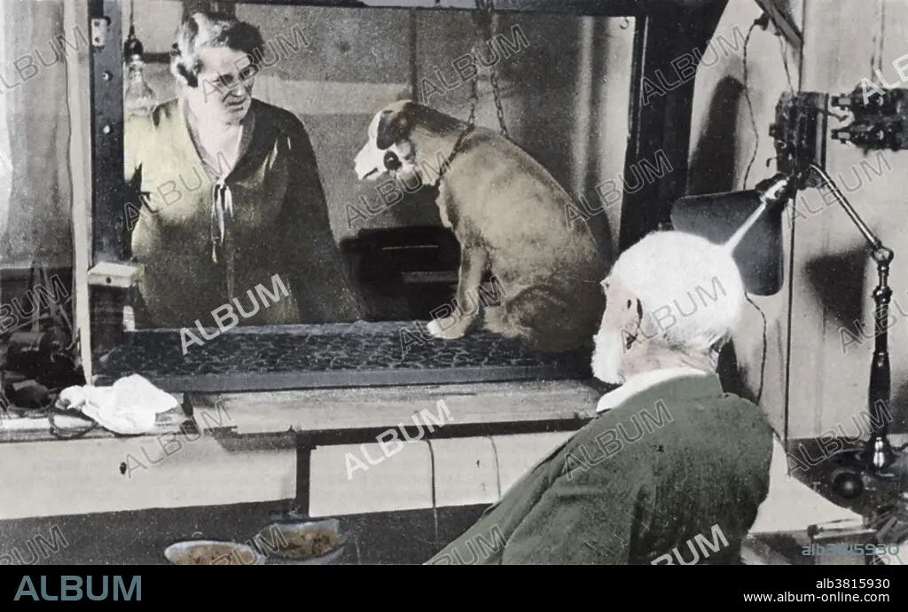 Caption: Pavlov observing one of the dogs on which he conducted his behavorist experiments. Ivan Petrovich Pavlov (1849-1936), Russian physiologist and experimental psychologist, who received the 1904 Nobel Prize for his work on the physiology of the digestive glands. He is best remembered for his work on conditioned reflexes, in which he conditioned dogs to salivate in anticipation of food by ringing a bell each meal time. Eventually, the bell alone provoked salivation. These experiments became the foundation of behaviorist psychology. Pavlov asked one of his students to sit beside his bed and to record the circumstances of his dying. He wanted to create unique evidence of subjective experiences of this terminal phase of life. He died of double pneumonia at the age of 86.