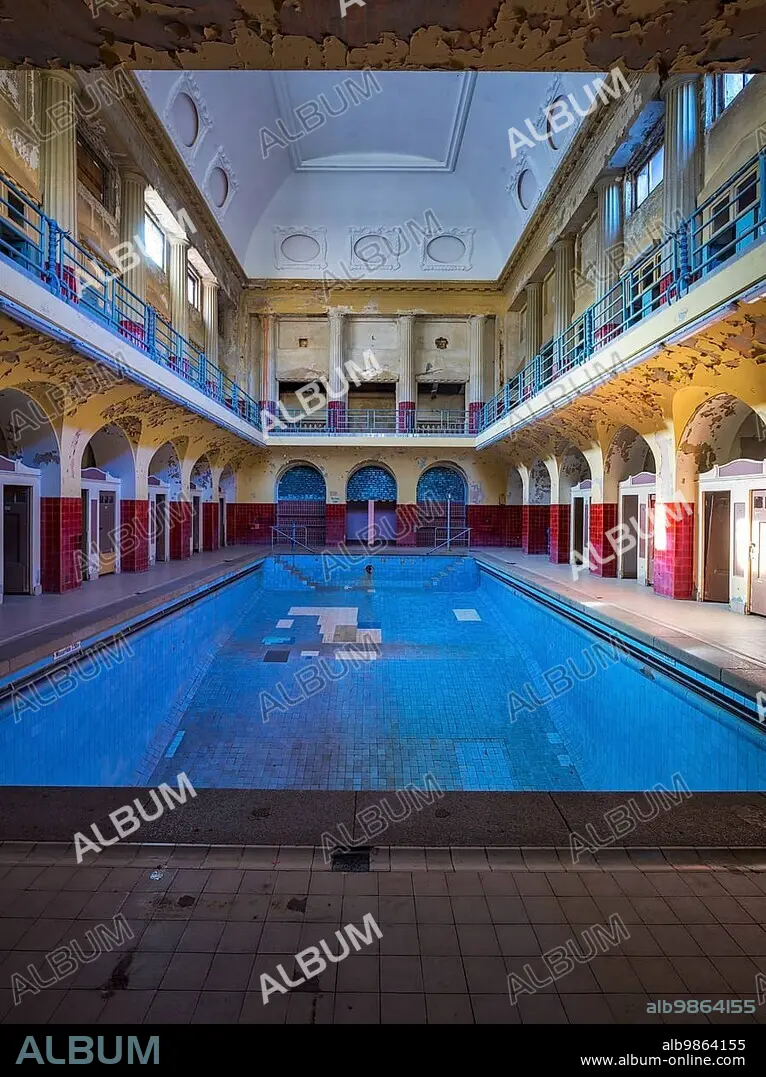 Caption: The Stadtbad is a building that was used as an indoor swimming pool for 88 years in the northern suburb of Leipzig. In 2004, the baths were closed due to structural defects. A foundation is working to renovate and revitalise the building. Women's swimming pool